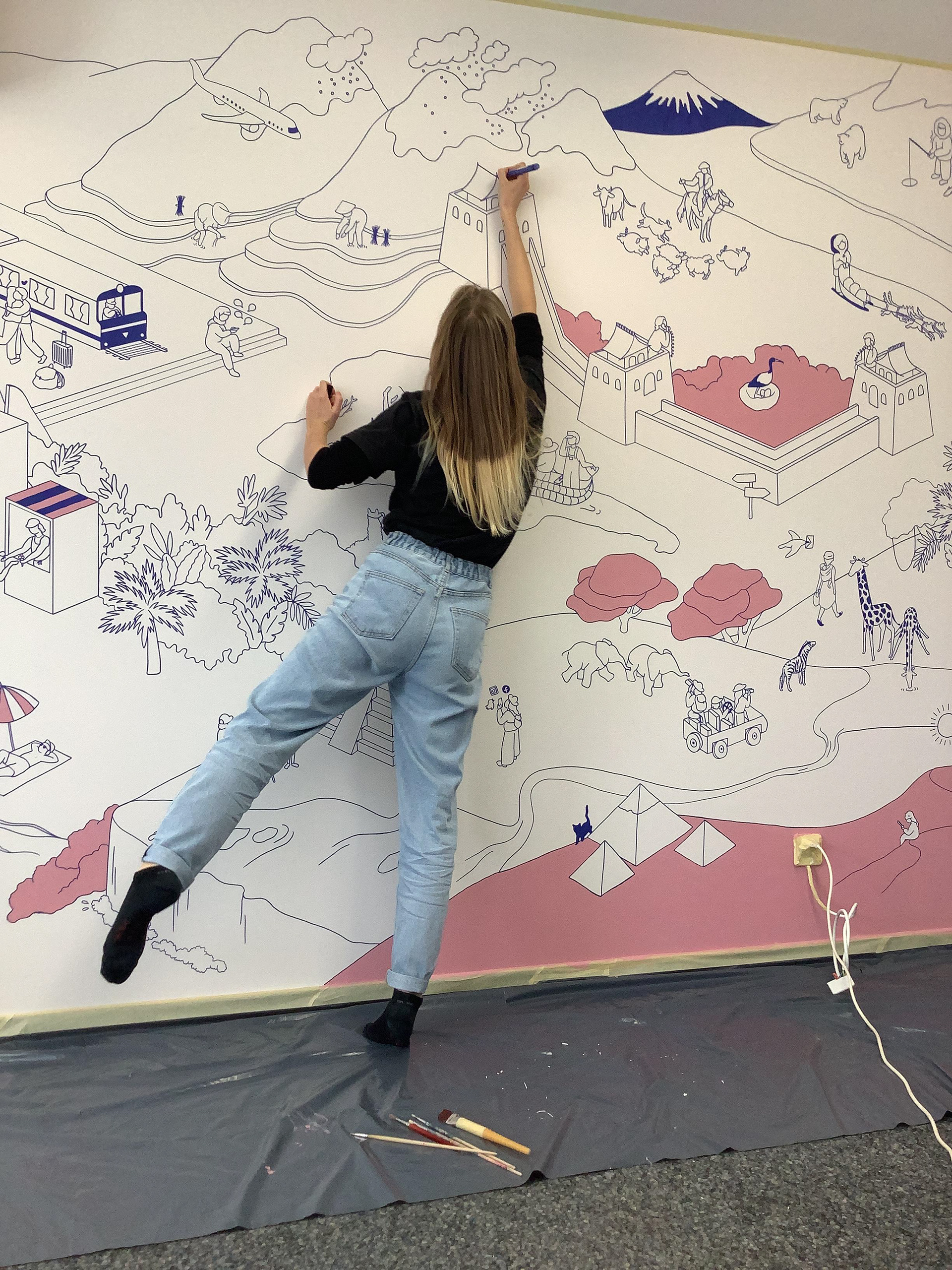 Réalisation de 3 fresques murales pour l'école de langue SWISS LINGUA, 2024